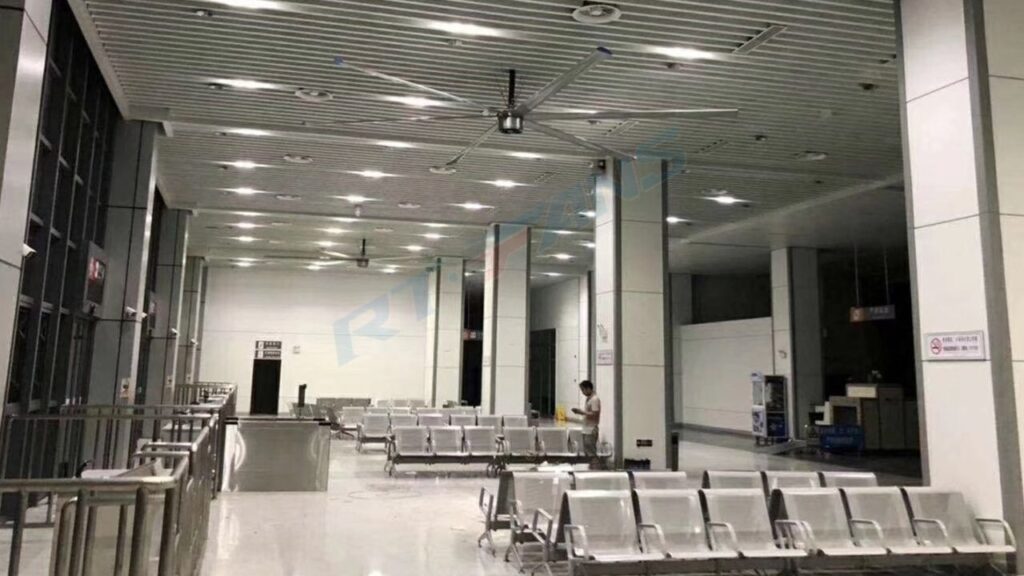 One of the main features of an airport waiting room is the ceiling fan, which helps to keep the space
