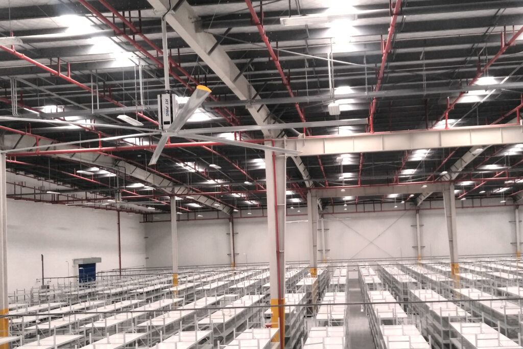 Yes, by reducing humidity by 10-15 percent, fans can dry floors, eliminate 20 percent of slips in reduce slip hazards warehouses. - Are HVLS fans compliant with safety regulations in logistics facilities?