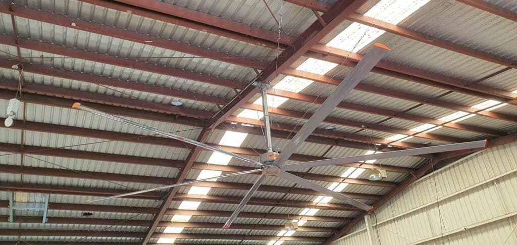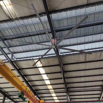 The HVLS ceiling fans with 8-24 foot diameters can move 100,000-400,000 CFM at low speeds.
