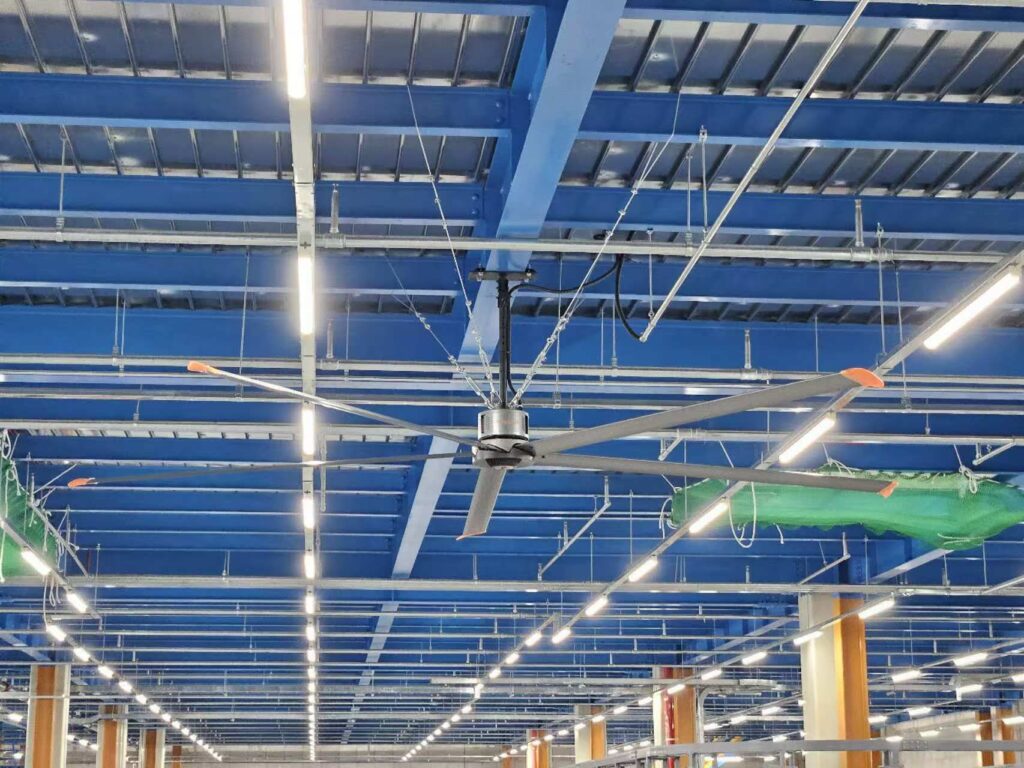 Large-diameter ceiling fans (8-24 feet) are known as High-Volume Low-Speed (HVLS) ceiling fans used in large spaces, with speeds of up to 400,000 cubic feet per minute at low speeds (50-100 RPM) to produce diffused airflow. They offer shopping mall cooling solutions in shopping malls by destratifying the air, adding warm and cool layers, and making the air more comfortable with a wind-chill effect, best suited in atriums and common areas.