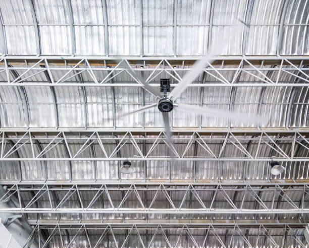 HVLS fans are available in 8-24 feet in diameter, with up to 400,000 cubic feet per minute, and 10,000-22,000 square feet per unit. The slow speed (50-100 RPM) they produce creates a fresh breeze, which encourages evaporative cooling on the skin, reducing perceived temperatures by 5-10 b°C but with no mechanical refrigeration. This is the most effective cooling option in hot warehouses because fans can be situated over aisles, where relief is required.